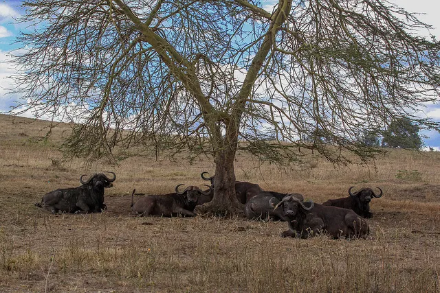 4: Another group of Cape buffalo lounge under a tree for an afternoon nap.