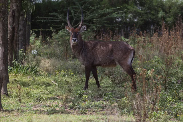 10: A majestic male waterbuck watches me intently. Waterbuck are a large species of African antelope, that take their name from their habitat being in close proximity to water.