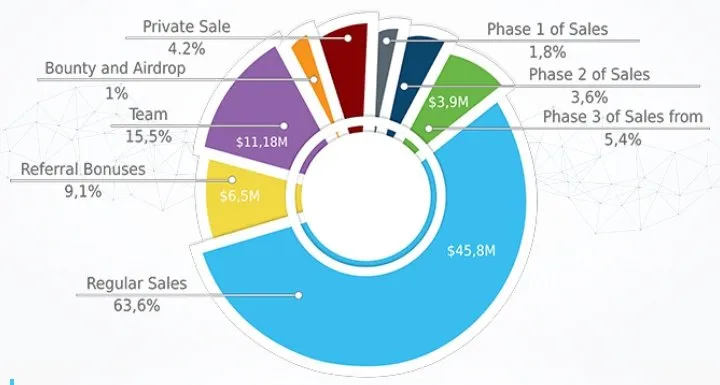 Total volume emisi adalah 72 000 000 token, yang dibagi menjadi beberapa bagian: