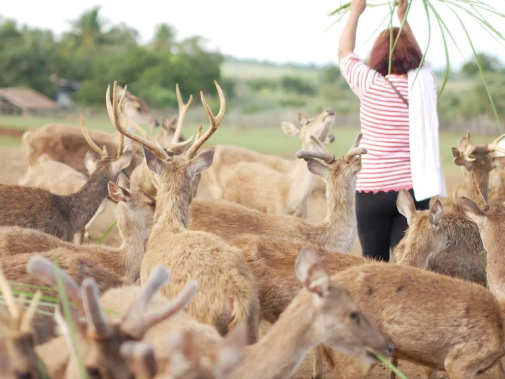The deer has become very familiar with people and visitors are encouraged to interact with them.