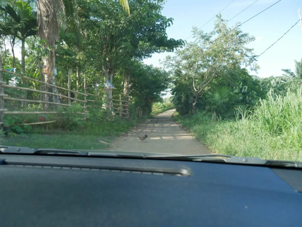 As I was driving I was hoping that there would be no vehicles coming from the farm. Now I was sure that two vehicles would not fit unless one vehicle would drive on the dirt or grass. It would be difficult for us to drive off the road as the car we were using is not meant for off-road. The what I was worried about finally happened. A white pickup truck was coming from the opposite direction and there was no way for us to move aside. The pickup truck was kind enough to drive off the road instead to let us pass. I rolled down my window and waved at them to say thank you. they gave me two beeps of the horn in a gesture to say "You're welcome".