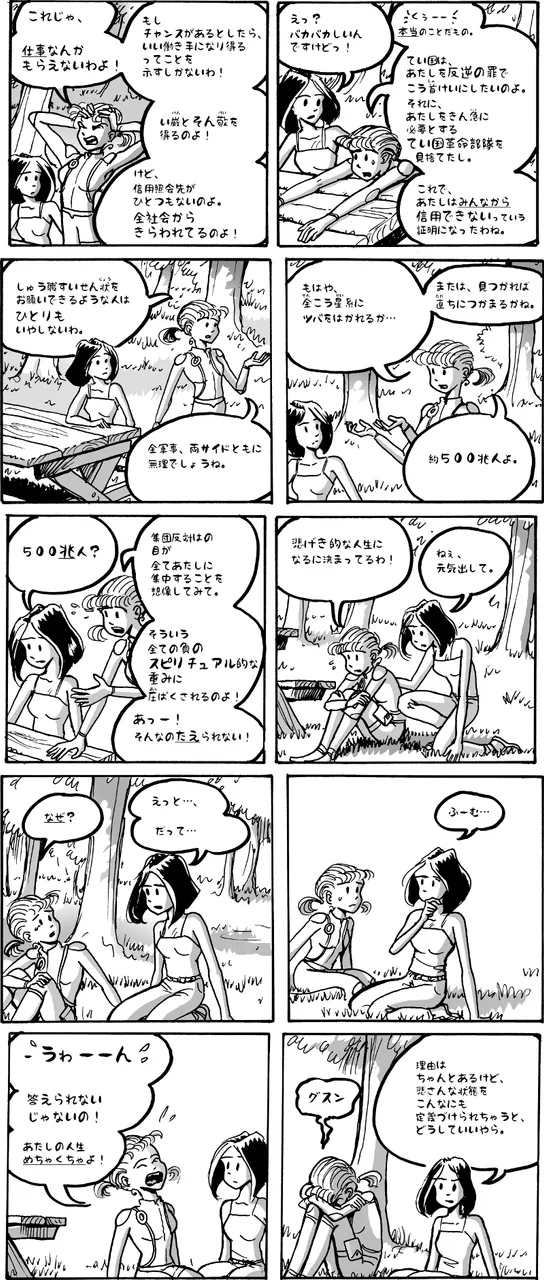 ・マーク・オークリー氏のウェブサイトをご覧ください。英語版の漫画を無料で読めて、購入することもできます。(左側の数字の34をクリックすると英語版を読むことができます。)