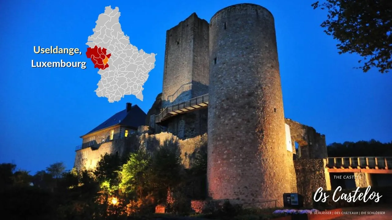 "O castelo de Useldange é um castelo medieval, agora principalmente em ruínas, localizado na aldeia de Useldange, no oeste de Luxemburgo. O lugar pode ser visitado durante todo o ano com arranjos especiais para pequenos grupos de visitantes. O castelo fica em uma pequena colina no centro da vila com vista para o rio Attert. As ruínas apresentam uma imagem razoável do castelo medieval, especialmente a parte exterior e uma das torres redondas. Uma ponte sobre o antigo fosso, com 10 metros de largura, fornece acesso ao castelo. A fortaleza, com 25 metros de altura, fica no centro do local."