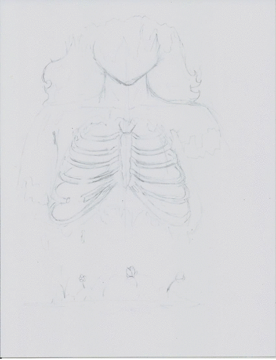 Como de costumbre, con un lápiz HB bocete rápidamente mi idea, para luego observarla mejor y ver que estaban totalmente desproporcionados ambos lados de las costillas, así que borre y lo hice con más calma.