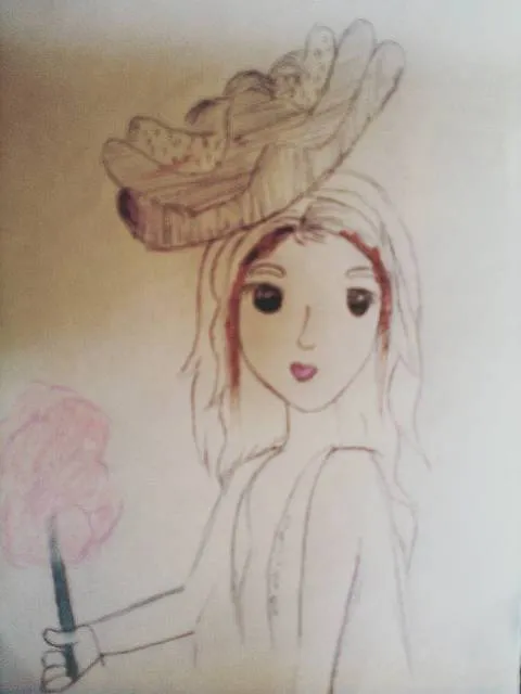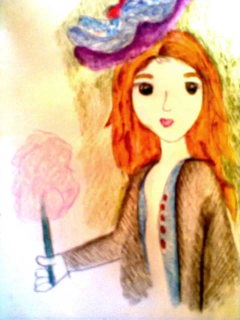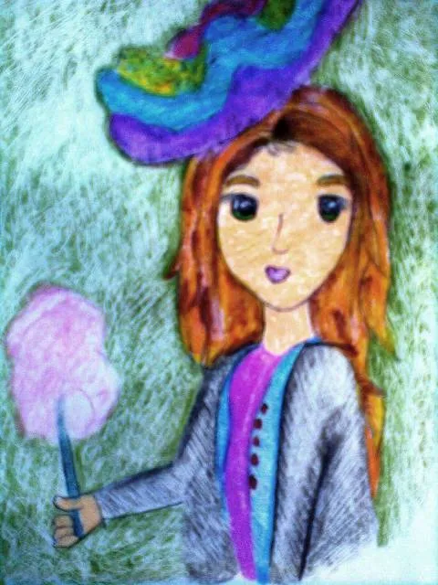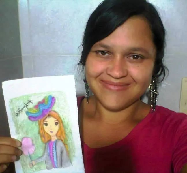 Using the shade of green to obtain the effect of the background of the drawing. The predominant colors that give beauty to the girl and accessories are: purple, pink, blue, gray, green and red. Finally the brown and yellow color to draw the long hair. Finally, the skin pigmentation is flesh colored.