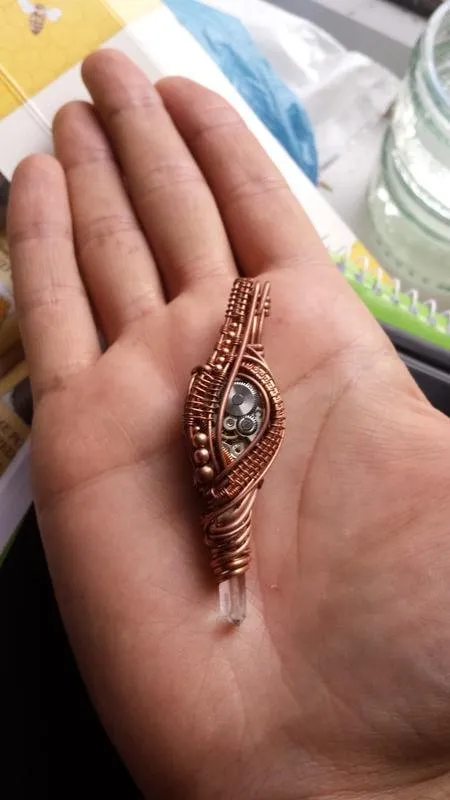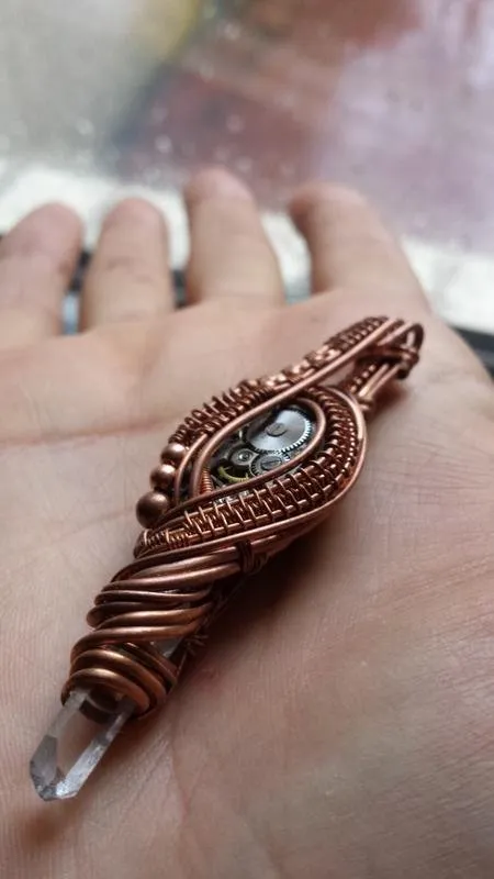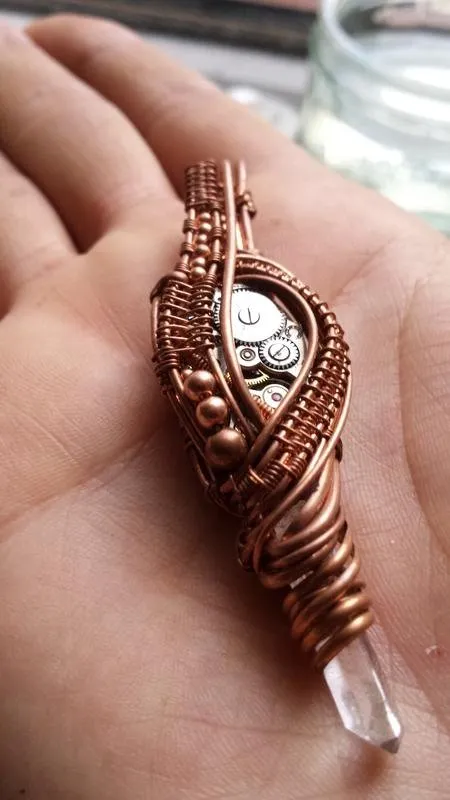 I've also just finished this pendant. It features a watch mechanism and a lovely quartz point.