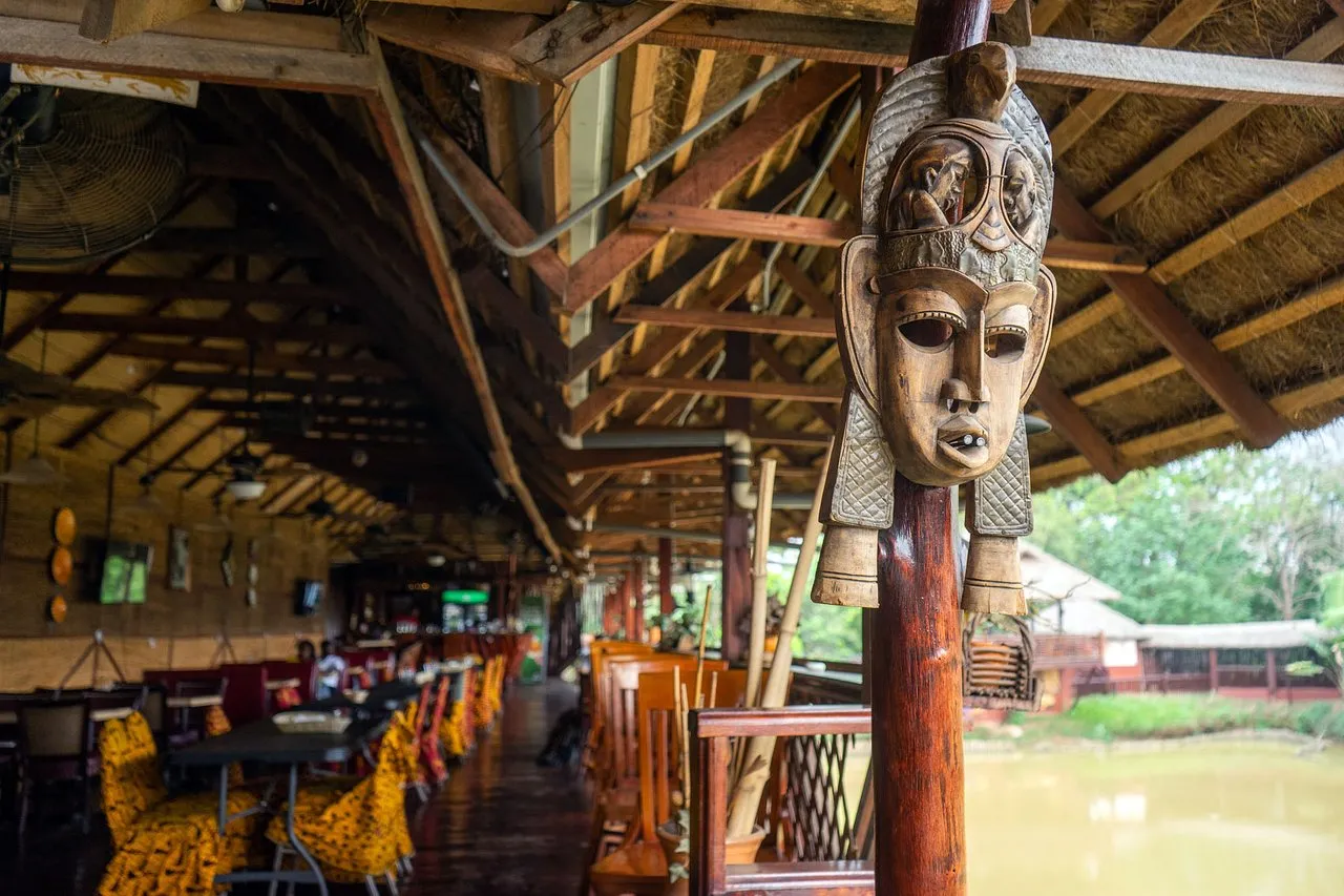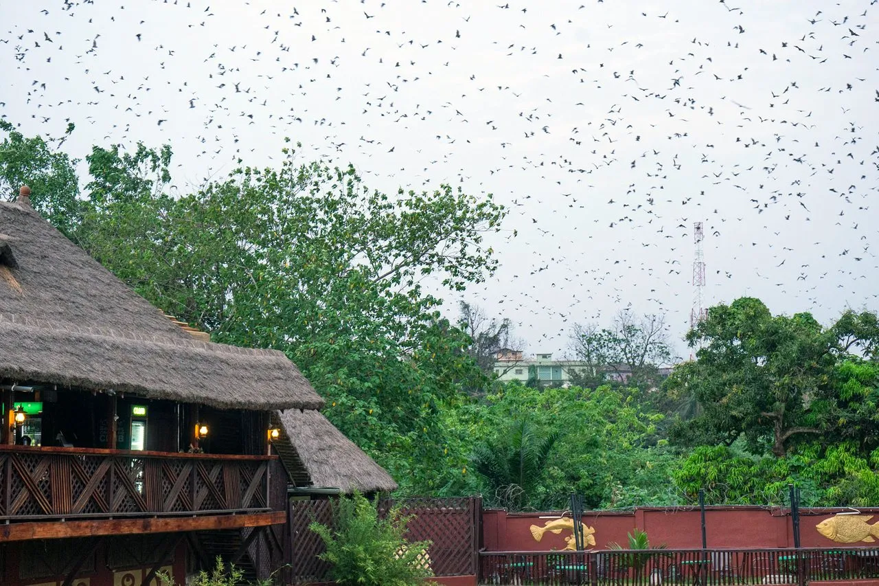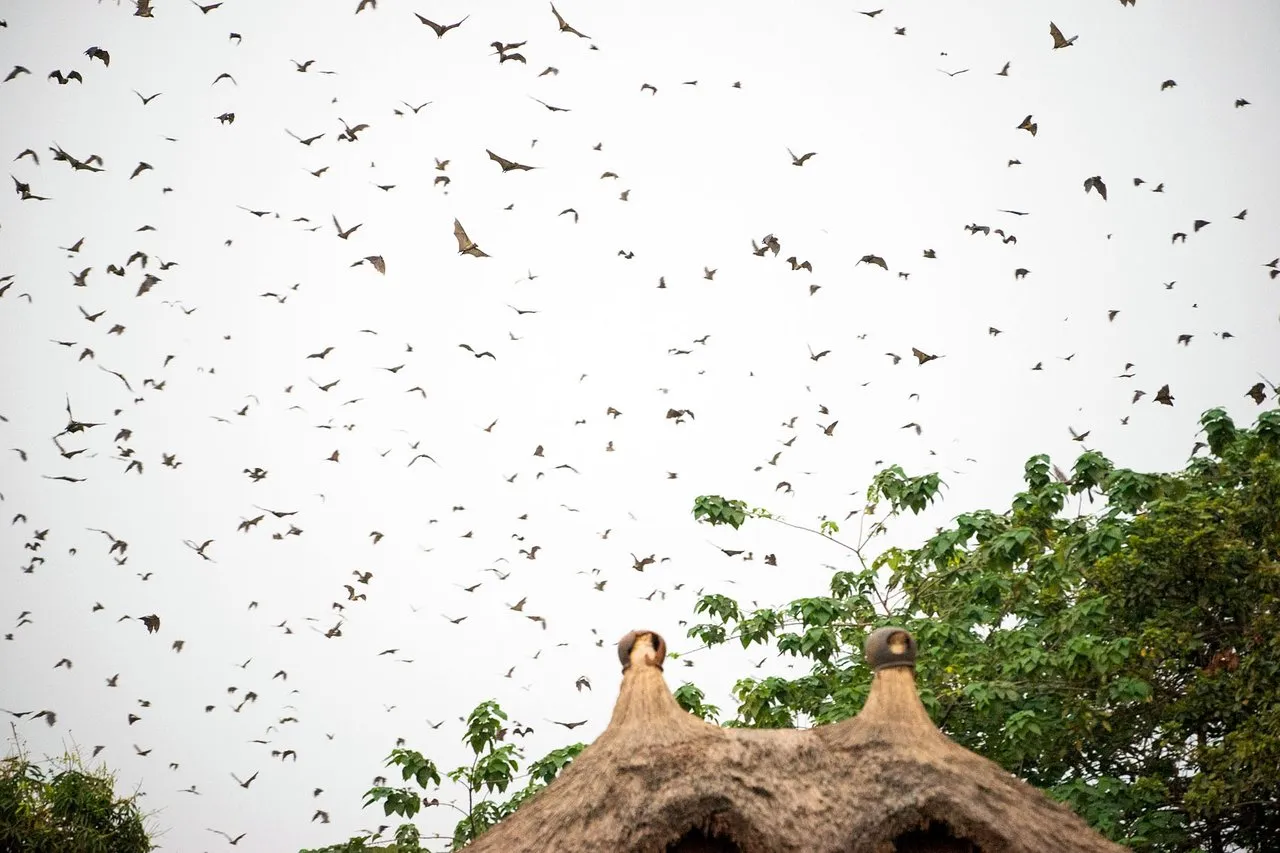 And if you're thirsty or hungry after all the history and shopping, we recommend heading over to Ike's Bar and Grill, also found on the complex. Plan your visit for the early evening, when an amazing sight occurs. The restaurant borders the Kumasi Zoo, and as the sun begins its descent, thousands upon thousands of bats take to the air for their nocturnal hunt.
