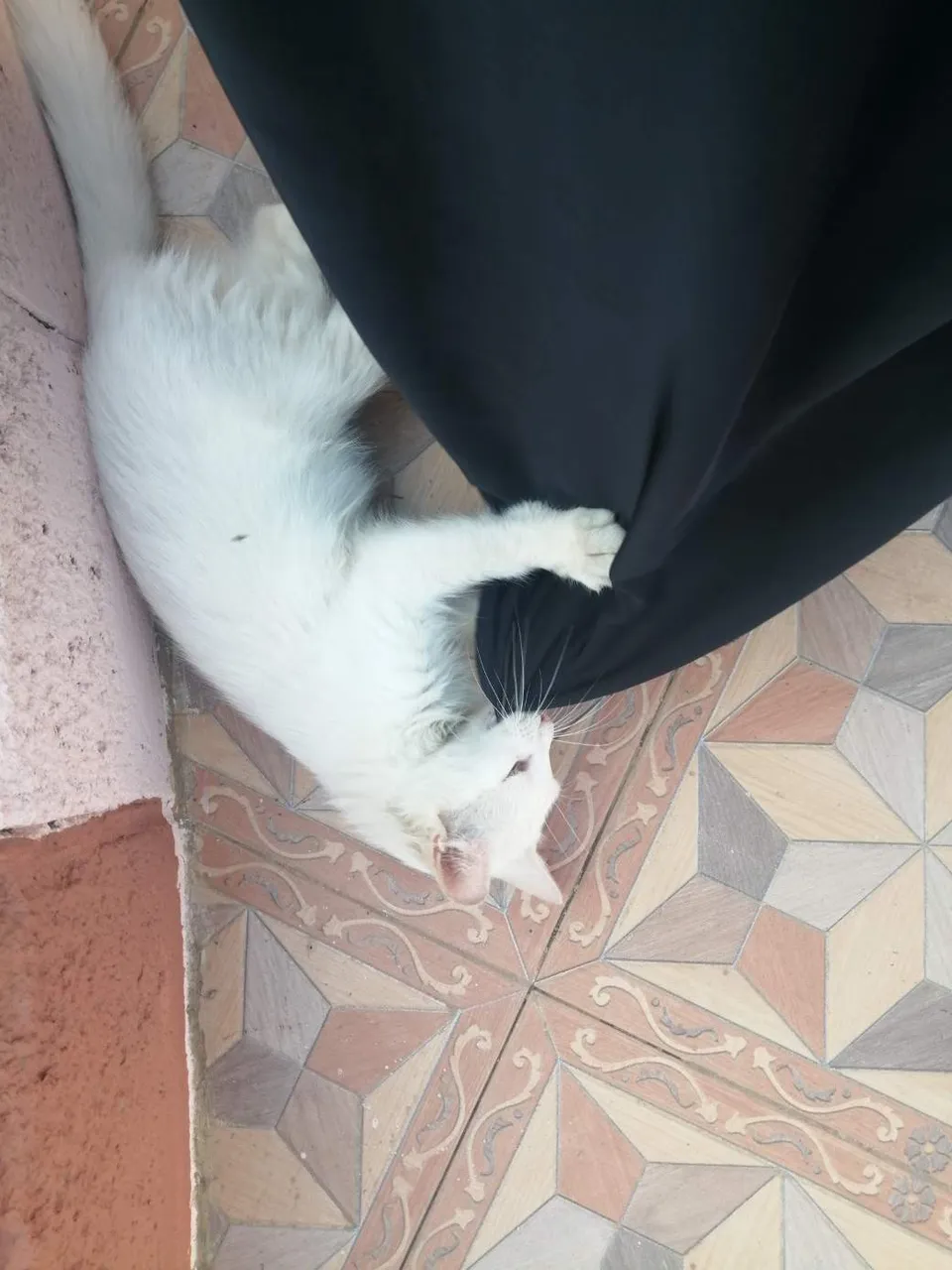 Upon my arrival, my pet Whitey was waiting for me in the gate. He looked so happy and even play my dress.