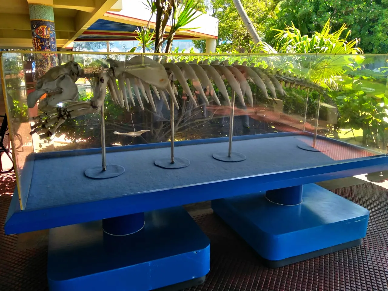 Skeleton structures of large and small animals that are exhibited in the aquarium.