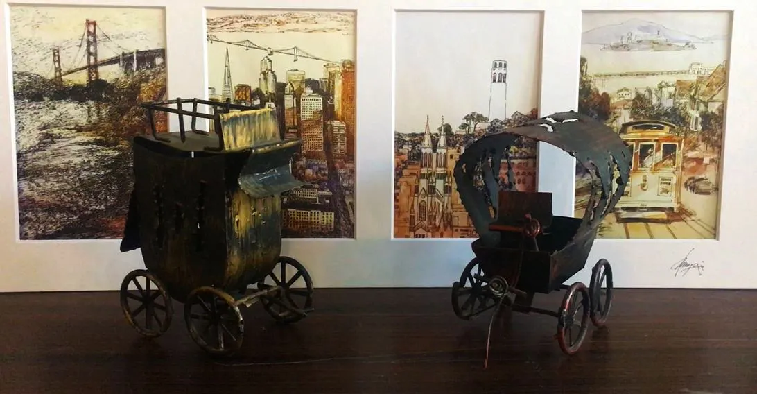 And here they are on top of my antique piano against the group miniature oil paintings of San Francisco.