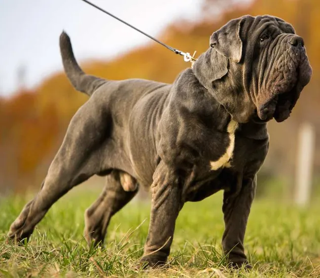General Appearance: Large, heavy massive and bulky dog, whose length of the body exceeds the height at the withers.