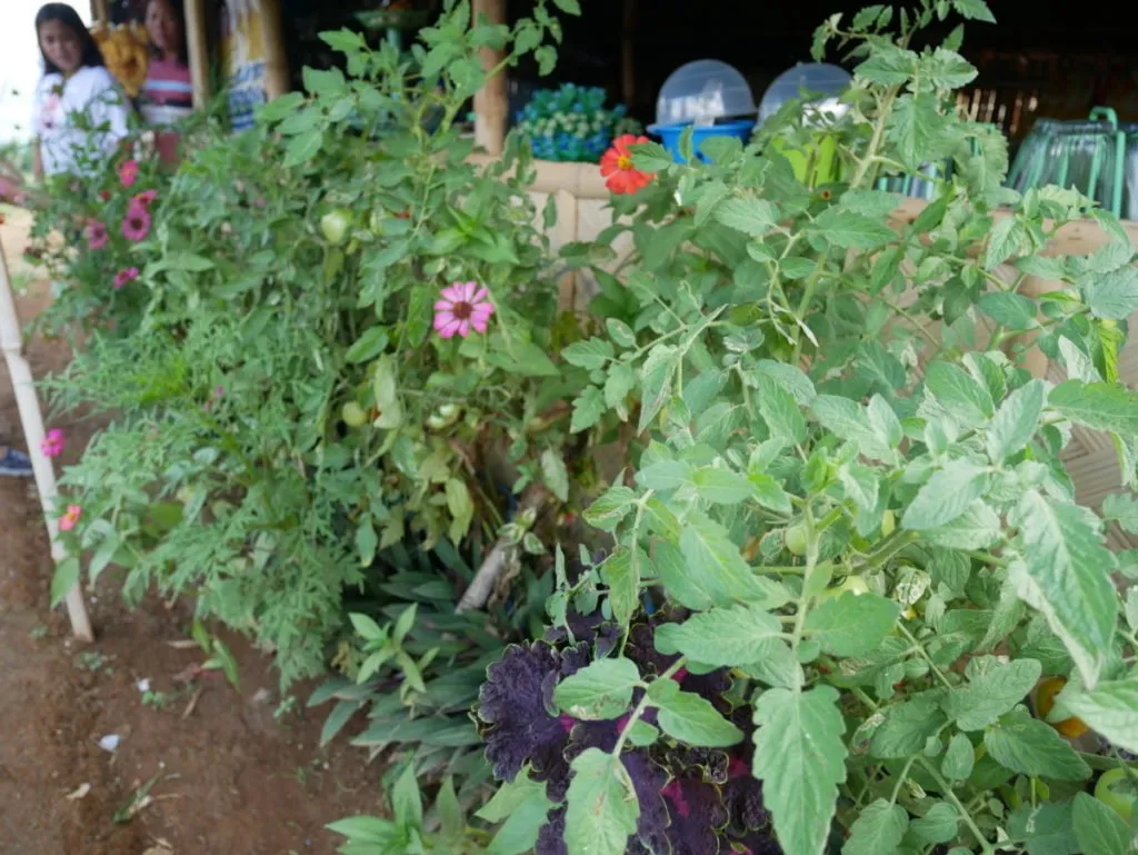 While waiting for our order let's explore the first place and enjoy this beautiful location. Just outside the store are tomato plants and it has a couple of tomatoes already.