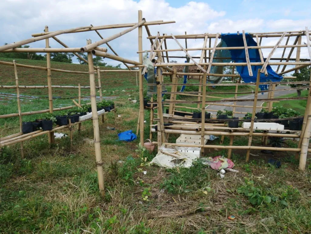 In this area, they have some strawberry plants in black plastic bags. They may be buying the plants from somewhere else and then replanted here.