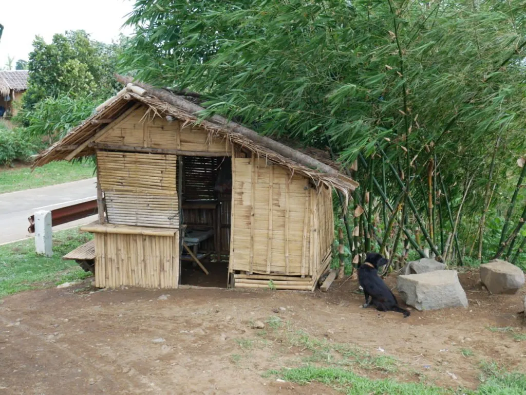 A small hut made from bamboo just near the entrance is guarded by a dog. I am not sure if someone sleeps there or if used for something else.
