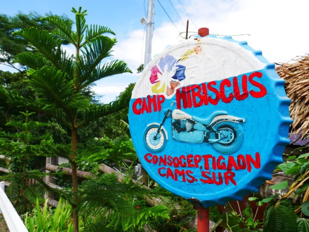 The sign they have outside is quite colorful which is like a large bottle cap. With a motorcycle on the sign, I could say that the owner loves bikes. With the name Camp Hibiscus definitely the owner is also a nature lover.