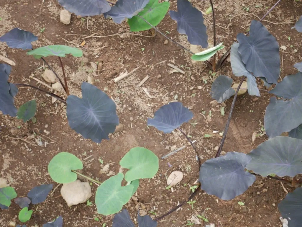 A plant that has black and green leaves. I am not sure if the leaves turns black when they get older or if it just sprouts both green and black leaves.
