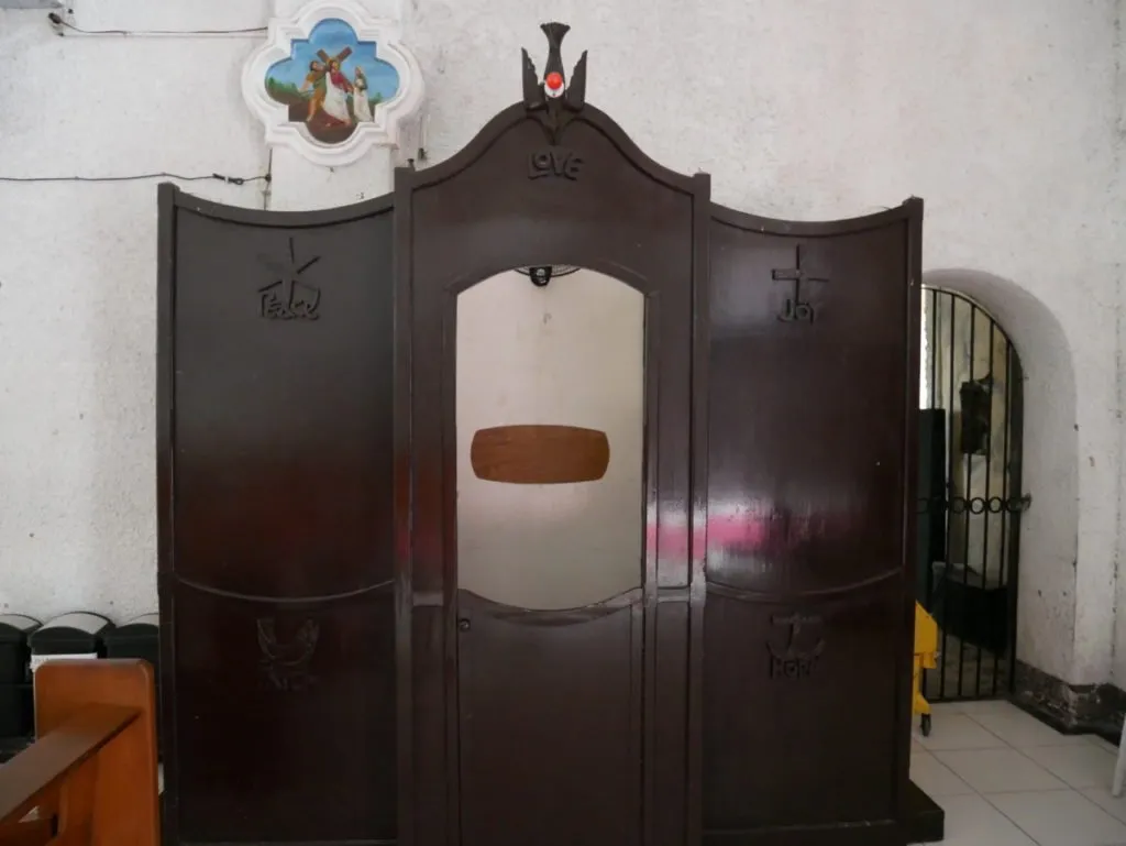 The confession box is found on the right side upon entering the church.