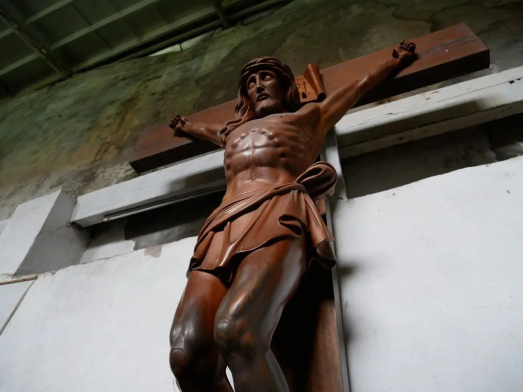 A wooden statue of the crucified Christ. Could be a relic that survived through the years.