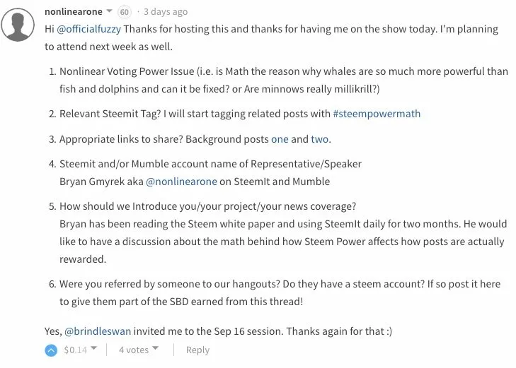 I made a more "factual" post right before the hangout with some more background including a screenshot from the Steem Whitepaper, which we also discussed.