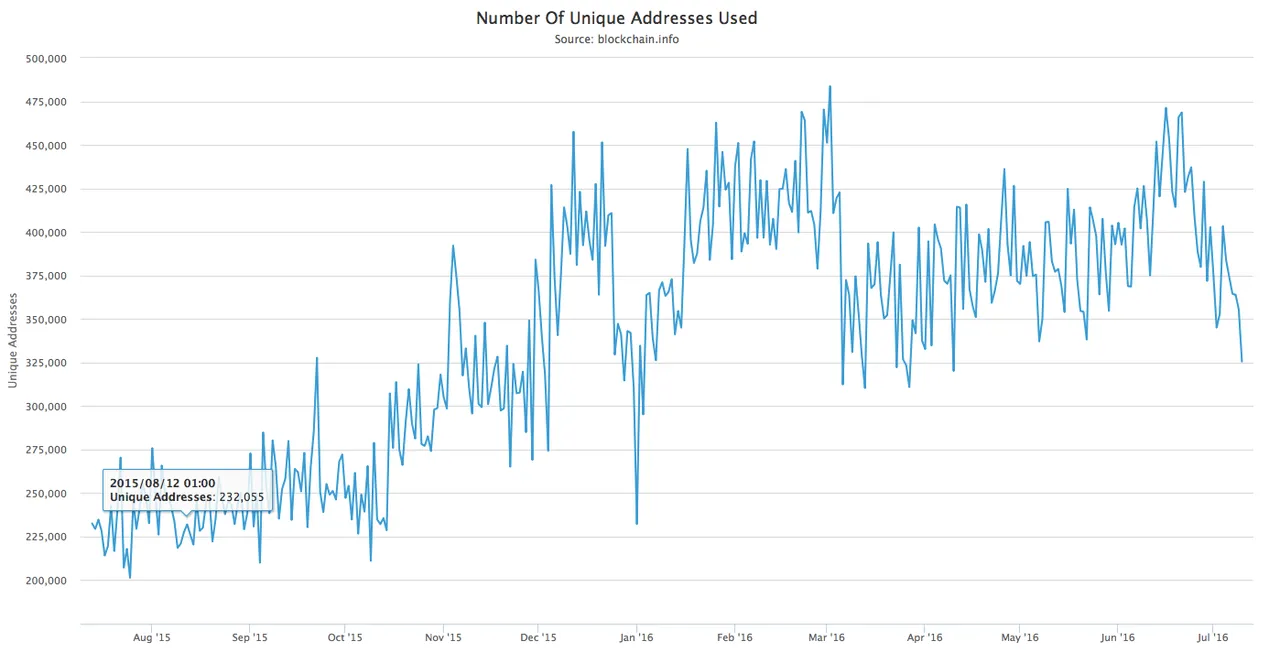 The difficultly here is, how many of these accounts belong to the same user, and how many users have accounts at multiple sources. I personally have a personal wallet on my laptop, and accounts at Coinbase, Poloniex, Bittrex, Circle,... I could go on. So let have a look at some other metrics to give us another aspect