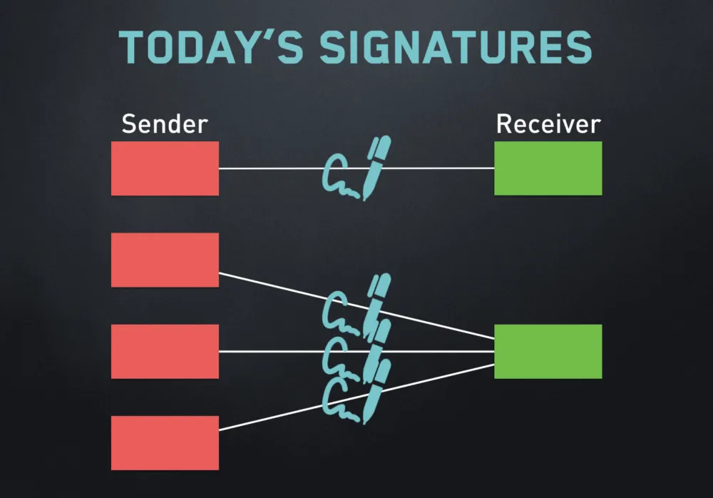 You can probably already figure out that this transaction, using Schnorr Signatures would require only one signature and would save a ton of space that can be used for other transactions.
