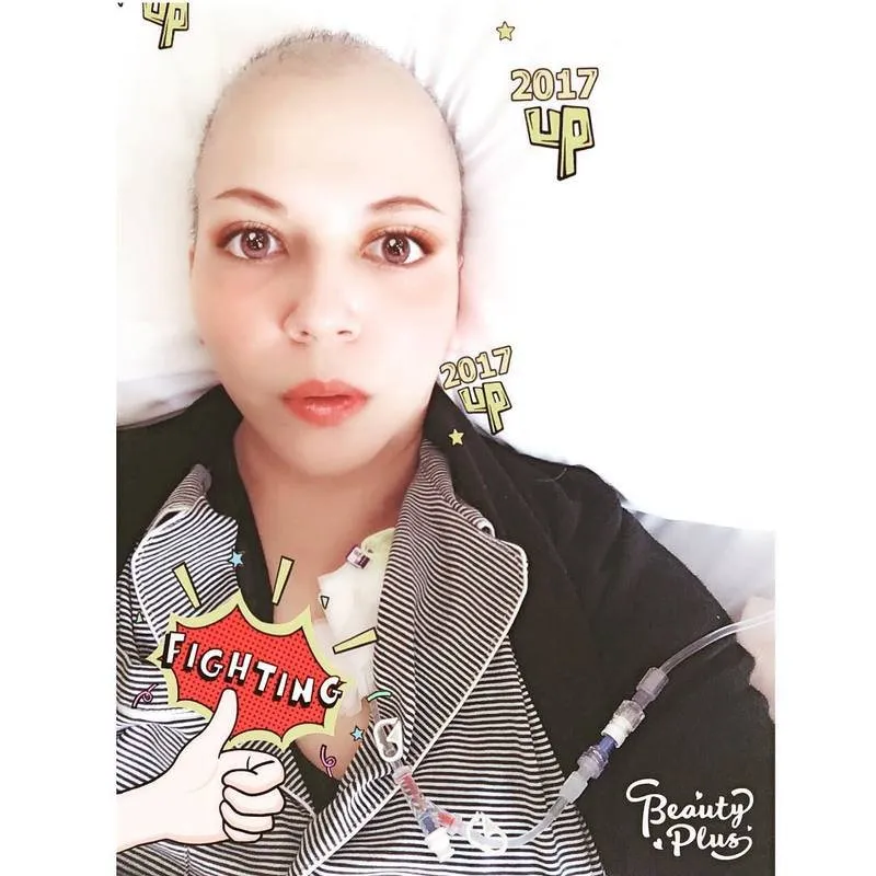 "4 weeks from my 1st chemo and 5 days after my 2nd chemo - hair basically began dropping off and decided to let go. I've done goodbye with my boob so this is far easier knowing it will grow back anyways. Bye hair, see you next year. FYI, thanks to my mom for taking good care of my head shape since born" - Cindy