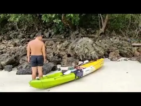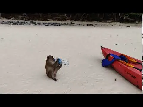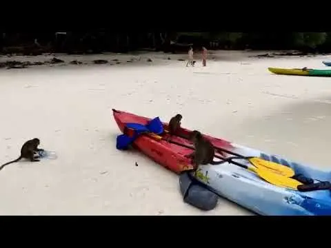 What we didn't think about was, that for two days nobody was allowed to go to that beach. The monkey apparently were used to people feeding them... and now they haven't eaten in two days haha so once we got there, they came right at us, jumped on our kayaks and opened our bags to find food in it.