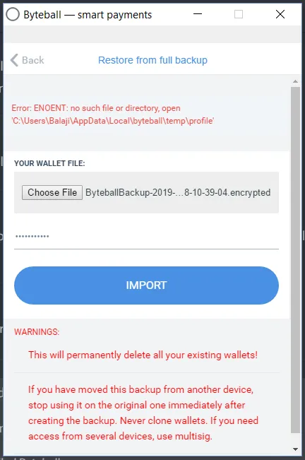 So far I have not received any responses from them for my questions. I'm going to wait until they respond. Two days back while having a discussion about Byteball wallet in Neoxian City, @neoxian did mention that he was not happy with the wallet and the backup and restore procedures they have. @zaku showed some instant proofs to say how it is easy to move the holdings from one wallet to another and how backups are easy. But I'm not sure why I'm running into problems. Maybe it is because I'm moving my wallet from my mobile platform to the desktop? Even in that case, it should have been smooth without issues because I'm just using the same backup file.
