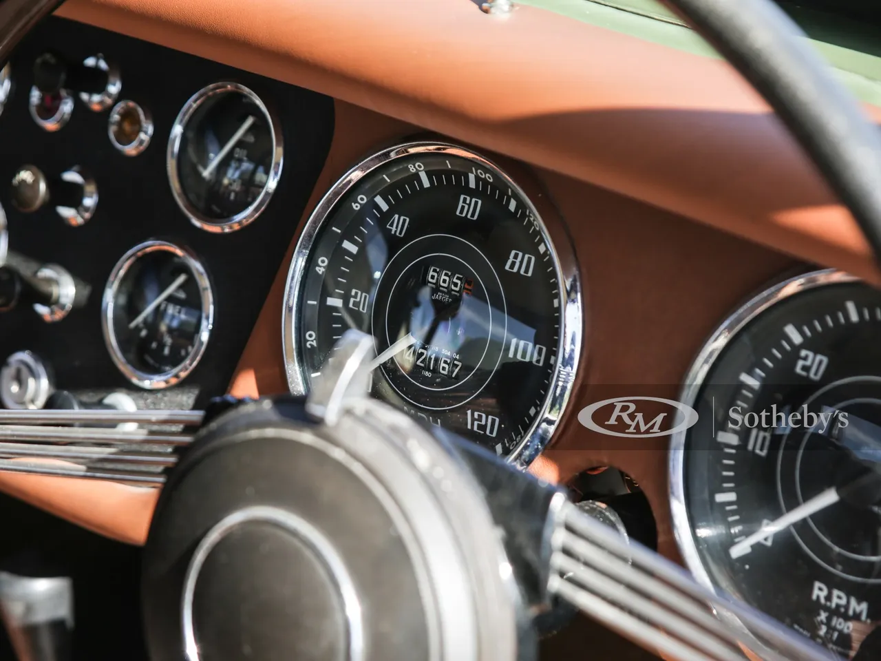 This example was restored in 2018 by the Triumph specialist, Just Historic Cars (Hastings, England). It's finished in Apple Green over brown leather interior.Beautiful car but for me, I.ll remove the headlight on the roof although historically it was necessary during rallies at that time
