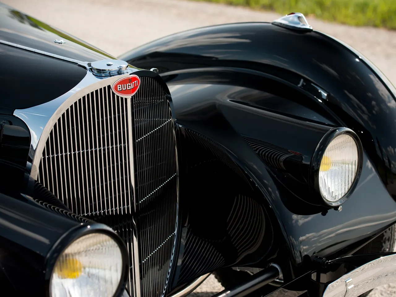 This model was completed in July 1937 with a body finished in black with pigskin upholstery. And with a particularity, its low headlight was placed between the radiator and front fenders, only 4 examples known. In 2013, the car was restored by RM Auto Restoration. Pure beauty...