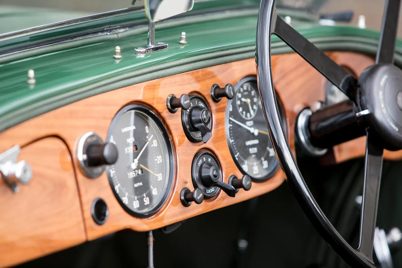 For this example, the car was delivered in green with matching leather interior, and came equipped with side screens, tonneau cover, and polished walnut woodwork. Full restoration in 2010. Beautiful...