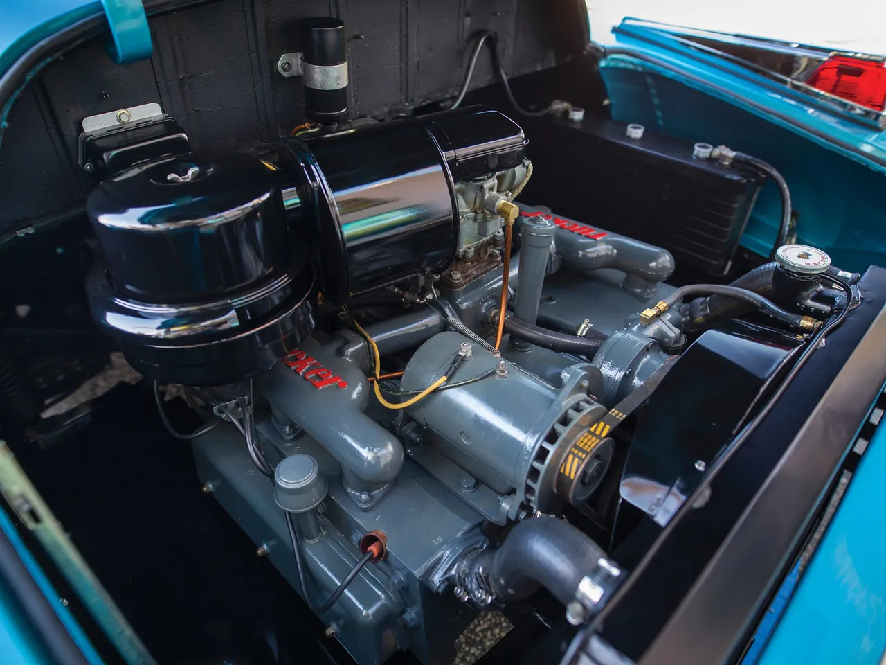 The engine, 5.475 litre H6 OHV, produces 166 hp, more power and torque than the Cord V-8. This model was the 40th of the 51 cars built and was sold at the bankruptcy auction in October 1950.