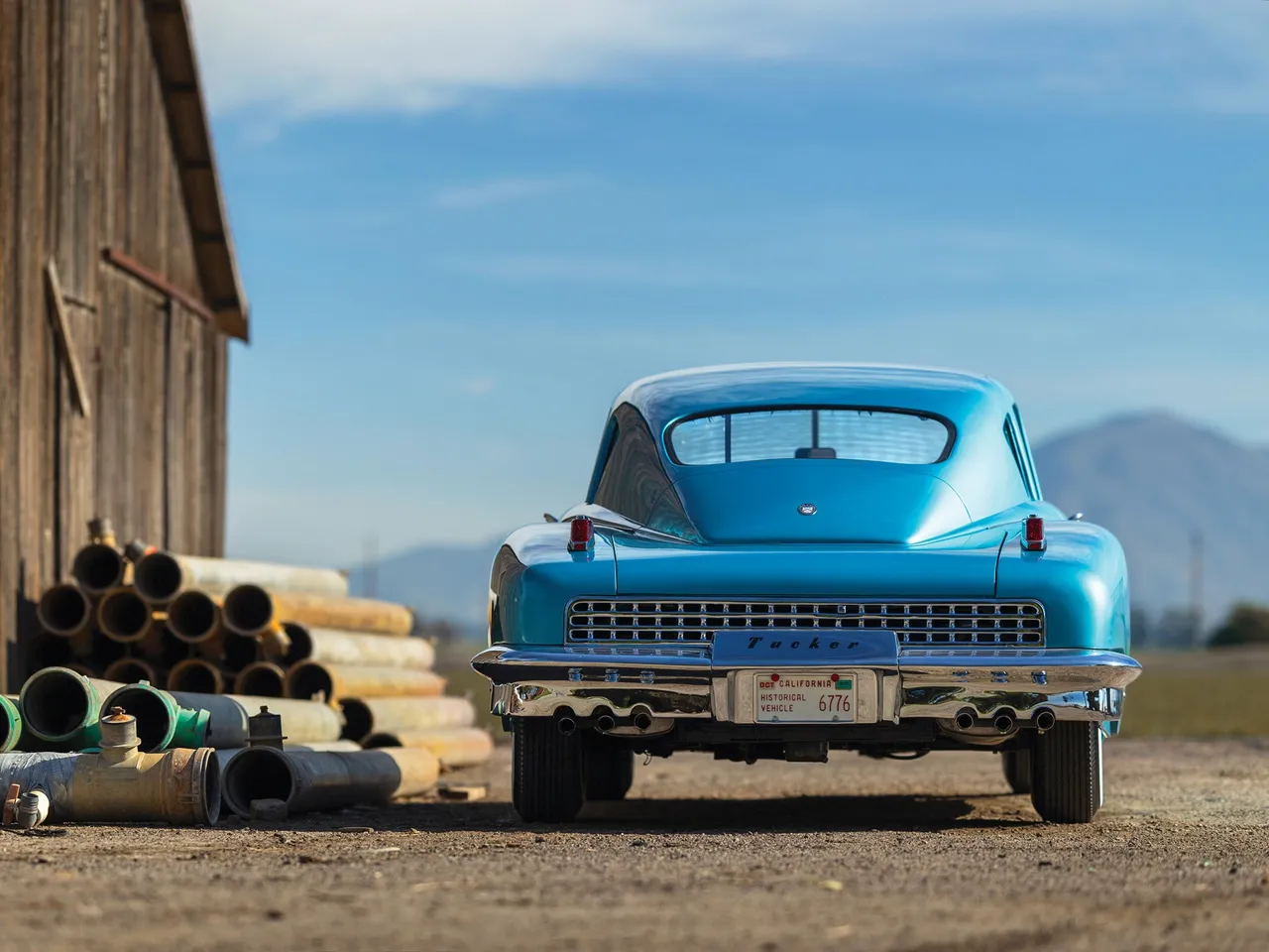 The concept, known as The Torpedo, was revolutionary with the engine (designed by a friend Harry Miller) mounted in the rear, all-independent suspension, disc brakes behind each wheel and a wide windshield that pop out in case of accident. But the Miller engine was very bad, Preston Tucker bought an engine to Air Cooled Motors, company making air-cooled helicopter engines :-).