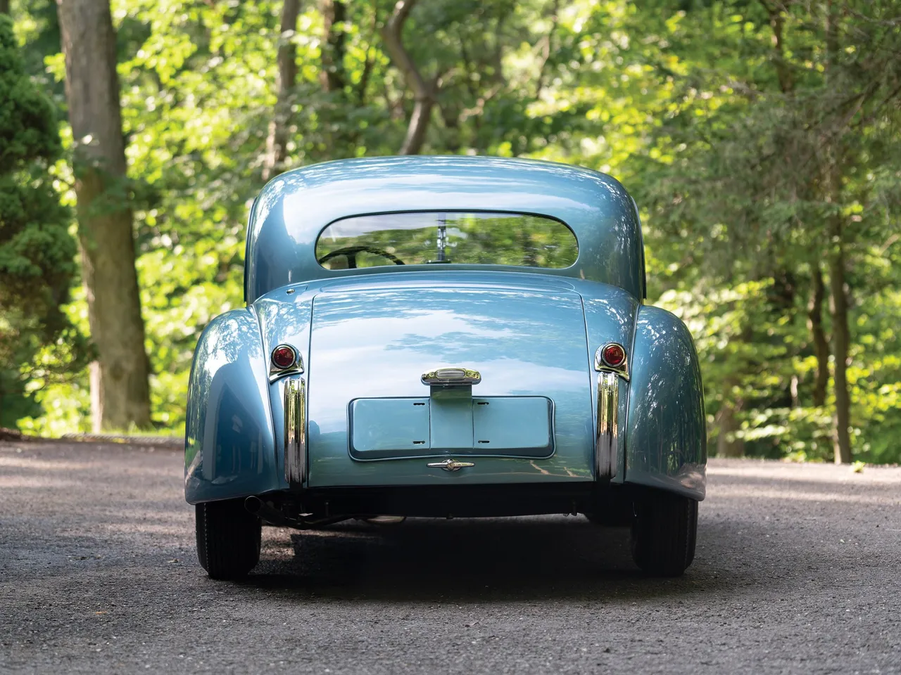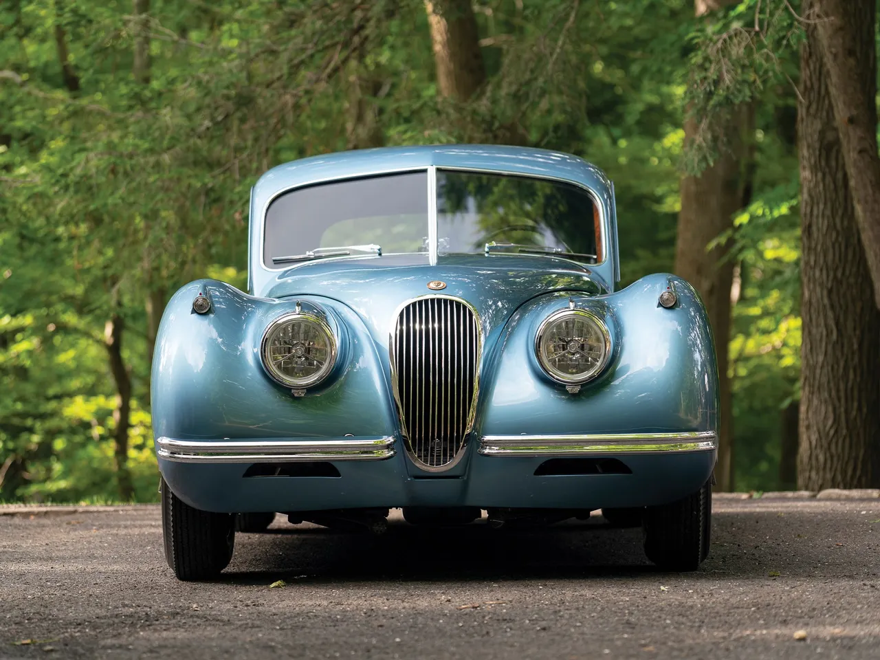 The roadster Jaguar XK120 was presented at London Motor Show in 1948. The production started in 1948 with the first 242 examples with a wood framed 2 seater bodies. For the record, the model was highly successful in racing and rallying.