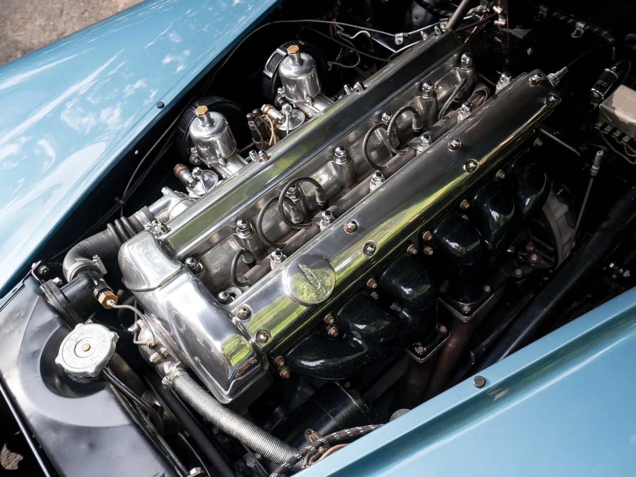 With its 3.4 liter DOHC Straight-6 engine, the Jaguar XK120 produces 160 hp at 5,000 rpm. In November 1949, The Motor Magazine tested the car and reached a top speed of 200 kmh with an acceleration 0-100kmh in 10 seconds.
