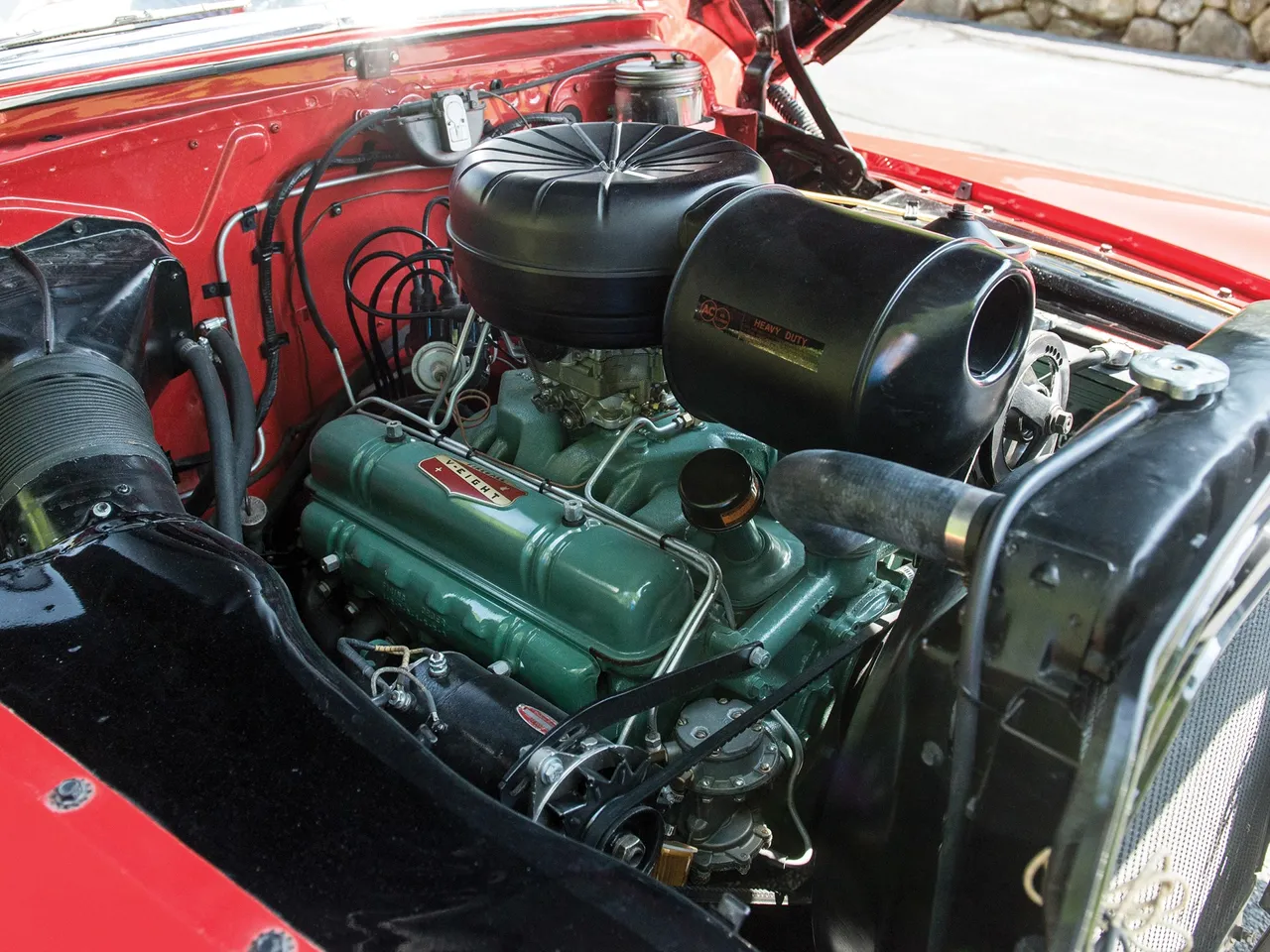 This model was restored with brillant red painting and a white convertible top. The interior has a two-tone maroon with white upholstery. True American classic car...