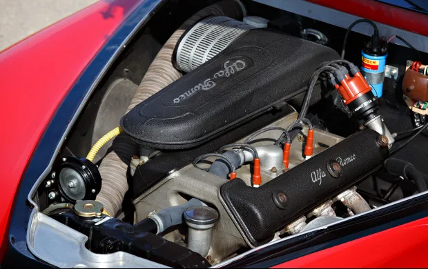 With its 1,975 cc DOHC inline 4-cylinder engine and twin solex carburetors, the Alfa Romeo 1900C SS Coupe produces 115 hp at 5,500 rpm. You have also 5-speed manual gearbox with 4 wheel hydraulic drum brakes.