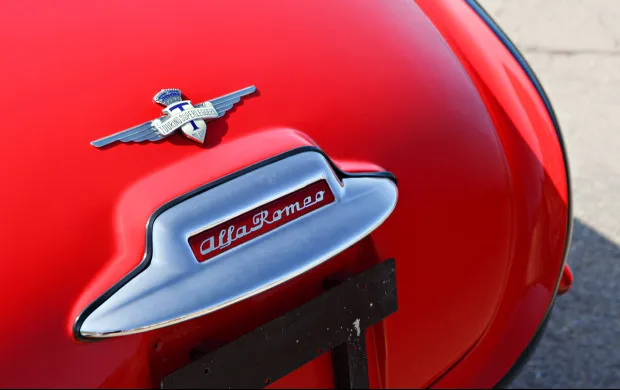 In 1955, Alfa Romeo updated its model with a more powerful version thanks to dual overhead cam inline 4-cylinder motor. This example five-window Superleggera Coupe is competition version SS, Super Sprint, with a lightweight short-chassis thanks to Carrozzeria Touring.