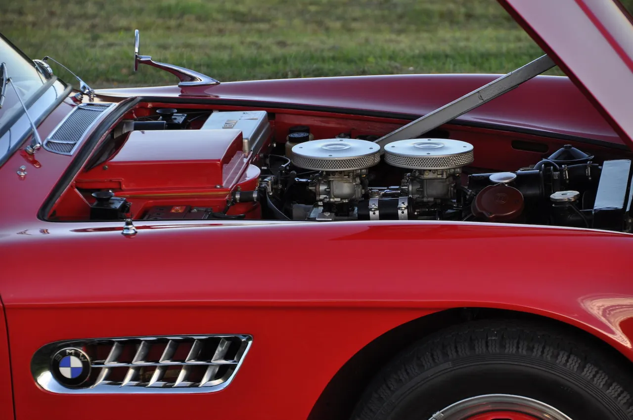 The engine of the 507 comes from the BMW 502, a 3.2-litre V8 engine, it's BMW's first V8 engine and in production until the M60 in 1992. It delivers 150 hp for a top speed around 250 kmh and 11 seconds to reach 100 kmh.