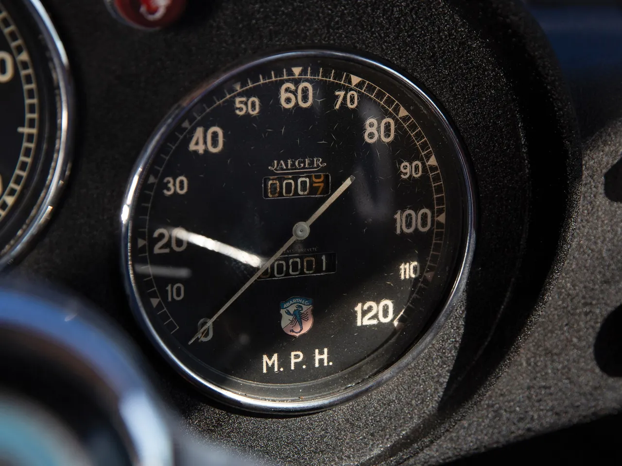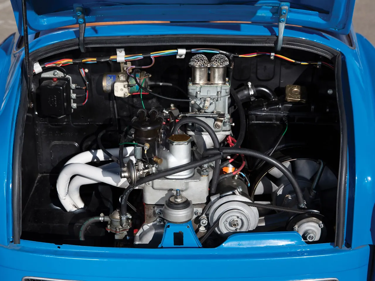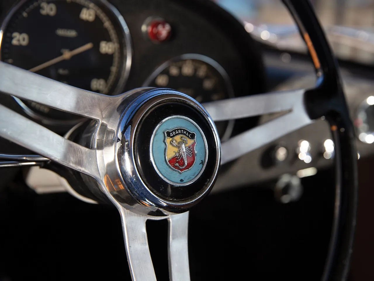 With its 747 cc inline four-cylinder engine with two-barrel Weber carburettor and four-speed manual transmission, the Fiat-Abarth 750 Zagato produces 41.5 hp for a top speed of 129 kmh.