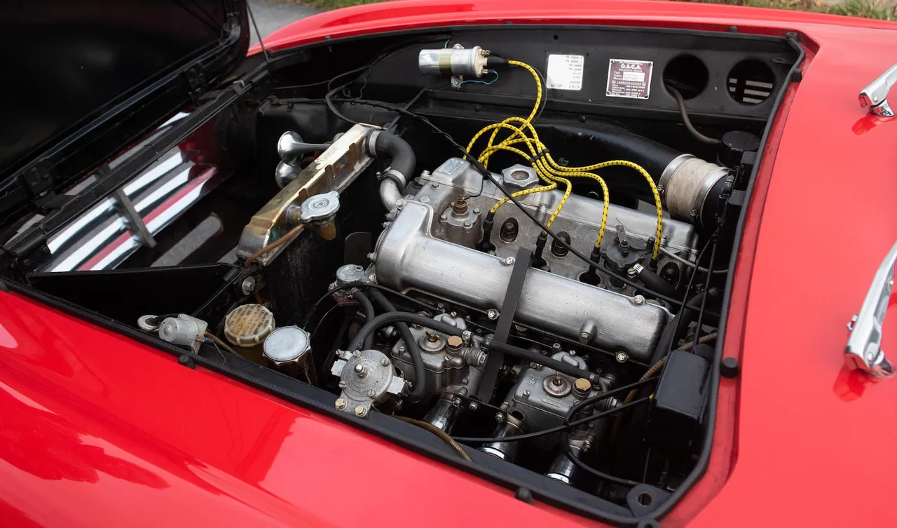 OSCA 1600 GT2 has an 1,568cc engine (based on Fiat's engine) with twin Weber 38DCOES producing 105 hp. The 1600 is equipped with four-wheel independent A-arms and disc brakes.