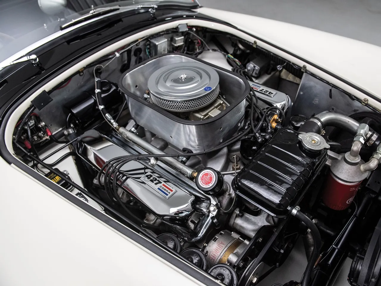 This model is one of 19 true production 427 competition Cobras with many successes on European tracks during the sixties. In 1965, Shelby wanted the Cobras to stay ahead the competition for the season. Ken Miles, sports car racing engineer, decided to have a larger and more powerful engine ; and thanks to Ford, they equipped the Shelby 427 Competition Cobra with 427 cu. inline OHV V-8 engine.