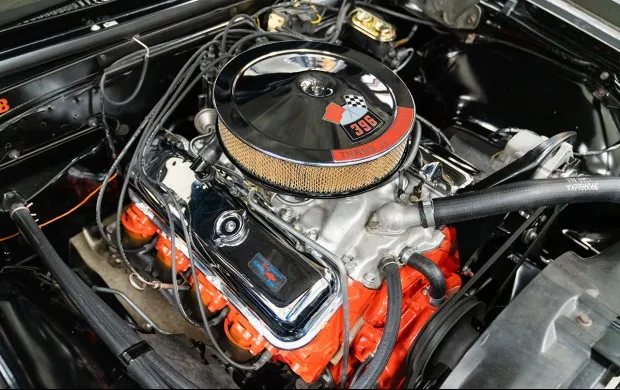 This Chevrolet Camaro SS 396/375 Convertible has an 396 CID L78 OHV V8 engine with single holley 4 barrel barburetor producing 375 hp at 5,600 rpm.