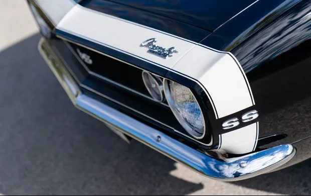 This model is rare L78 Camaro convertible, one of the 27 examples known to still exist (only 150 convertibles were built in 1967). The L78 was a Big-Block engine producing 375 hp. The car was known on the Super Stock drag races as the Batcar with its livery inspired by the Batman franchise. In two seasons, the car had multiple successes including SS/1A Class Champion at the AHRA and NHRA Winternationals in 1969.