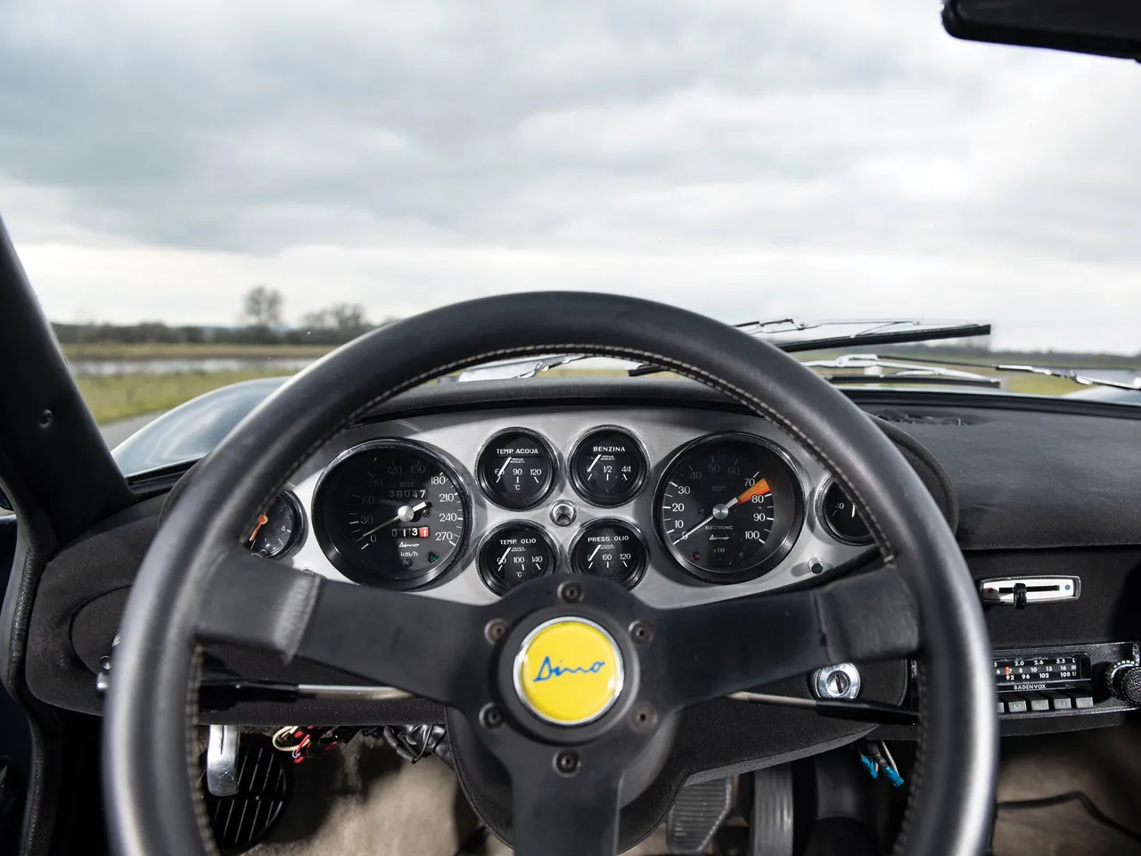 The Dino 246 GT has a 2.4-litre V-6 engine producing 195 hp at 7,600 rpm with a top speed of 242 kmh.