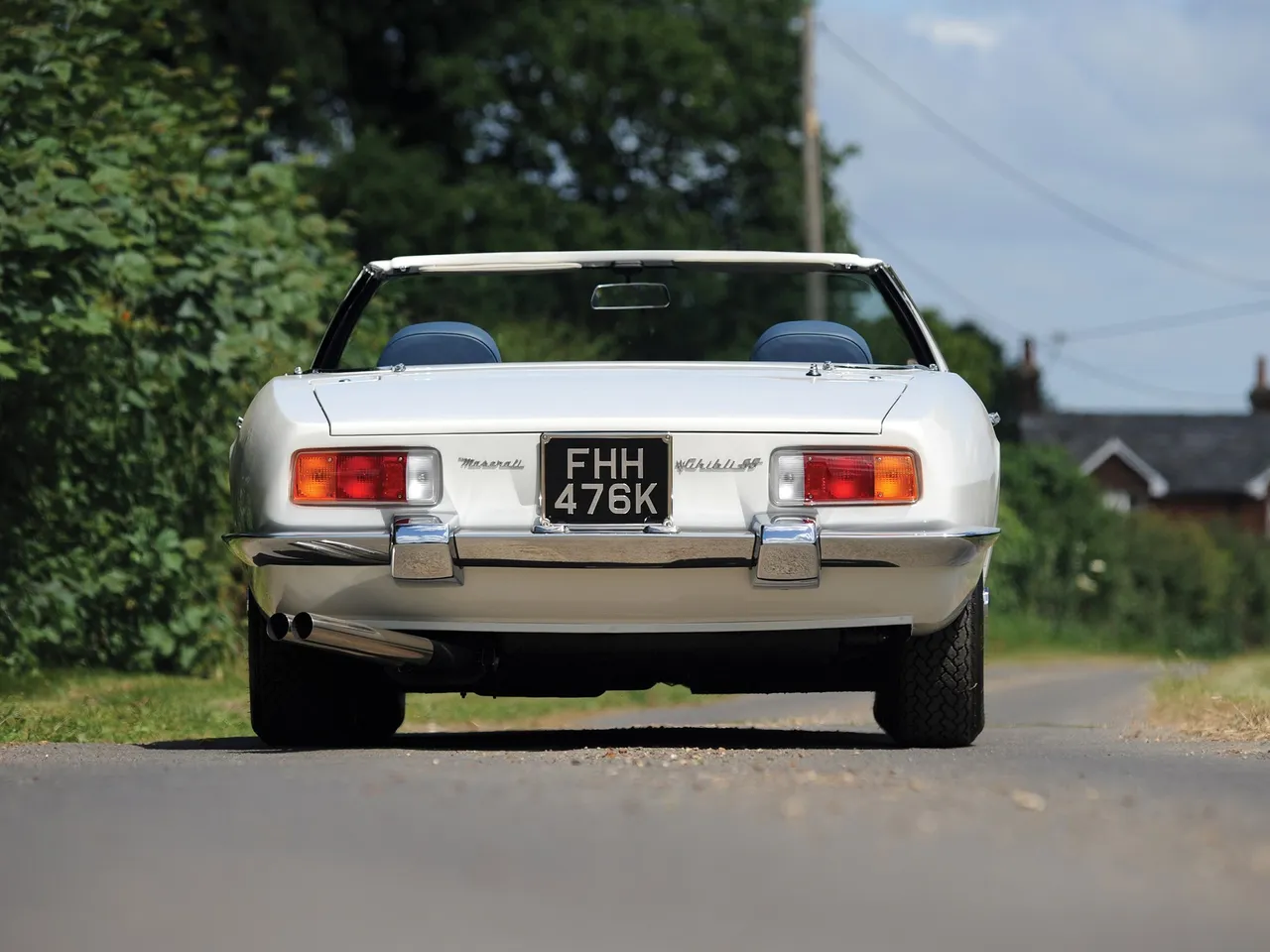 Named after a hot wind of the Libyan desert, the Maserati_Ghibli is the first version produced by Maserati with its low and long recognizable nose. The open-top version was presented at the Turin Motor Show in 1968, based on a design by Giorgetto Giugiaro, Italatin automobile designer working at Carrozzeria Ghia.