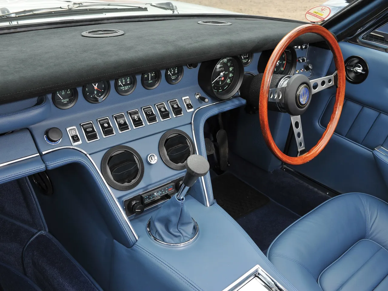 Fully restored to its original colours by McGrath Maserati in 2018, this model is finished in Polo Bianco paint over blue leather interior. I love the interior in this color.