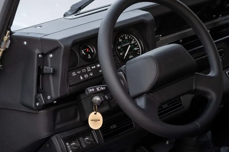 Beautiful restoration with this hand-painted chassis, the Land Rover 110 was finished in matte medium grey over black leather trim. Nice ?