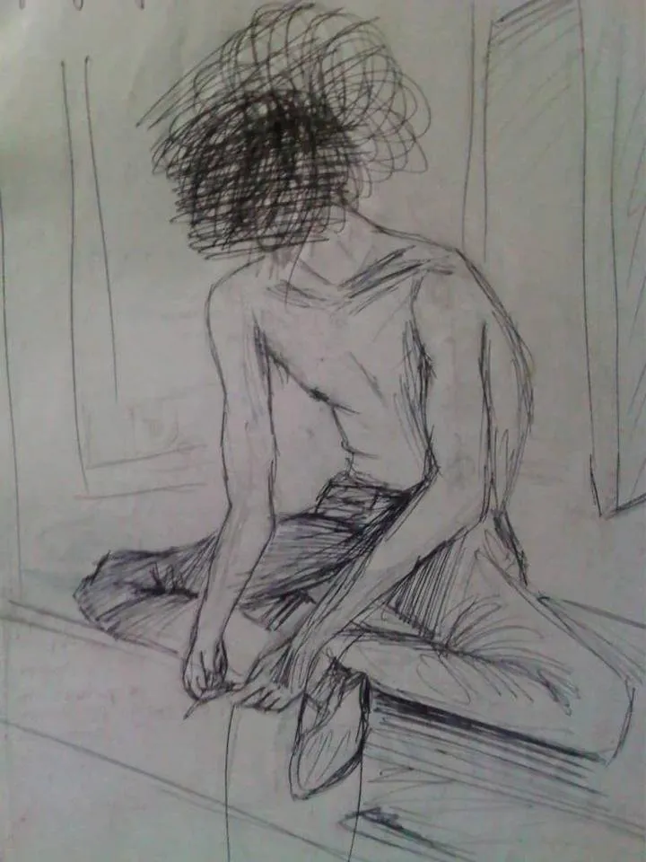 Cuando veo mi reflejo en un espejo, solo veo mi alrededor, mi cuello, mis hombros, el pecho, el grosor de todo, me imagino dibujándolo, un personaje sin rostro, sin emociones, frió y vacio como el lugar donde me encuentro en ocasiones.
