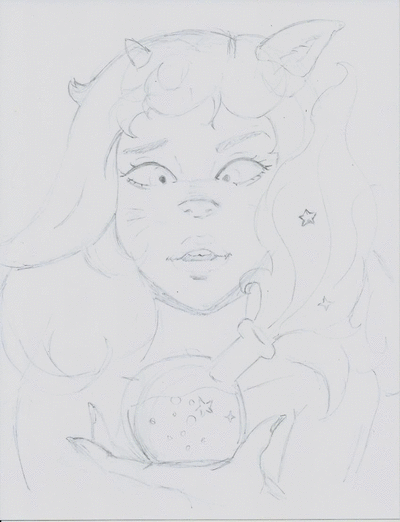 Los retoques finales, por supuesto debía añadir tinta a la poción, además de un poco de tono a los iris de los ojos, acá aprovecho para decir que admiro demasiado a aquellos artistas que logran grandes retratos y obras de arte con tan solo un bolígrafo, a mí me ha costado mucho realizar sombreados suaves con el bolígrafo.